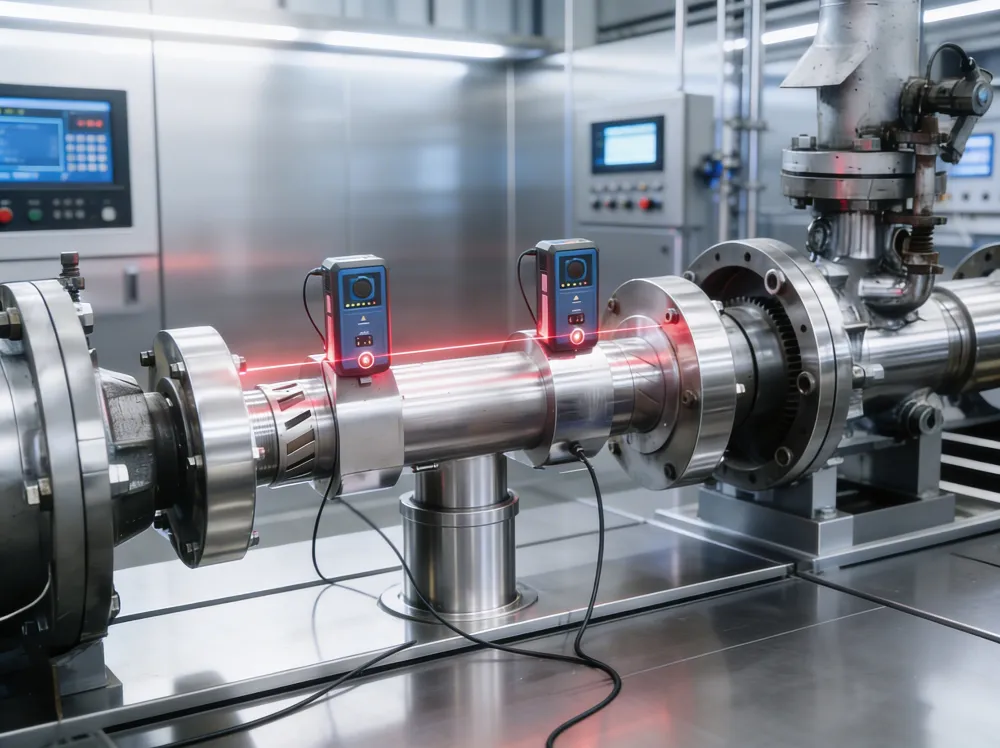 O Alinhamento a Laser é uma técnica utilizada para ajustar com alta precisão o posicionamento relativo entre eixos de máquinas acopladas, como motores, bombas e redutores.