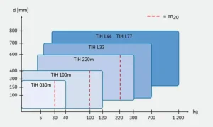 A abrangente linha de Aquecedores por Indução SKF é apropriada para a maior parte das aplicações de aquecimento de rolamentos. O gráfico de seleção a seguir apresenta informações gerais sobre a escolha de um aquecedor por indução para aplicações de aquecimento de rolamentos. Para aquecer componentes que não sejam rolamentos, a Abecom recomenda o uso de um aquecedor da série TIH L MB. Entre em contato com a Abecom para obter ajudar para selecionar um Aquecedor por Indução adequado para sua aplicação.